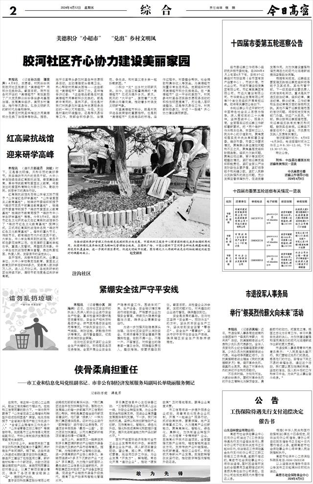 市委第三巡察组 市水业公司□华荣实业发展有限公司 18660608916 gmswxcsz@wf.shandong.cn 高密市健康路3666号,市委第三巡察组收,邮编:261500 水业公司办公楼一楼西步行梯西墙□红高粱大厦13楼西步行梯南墙