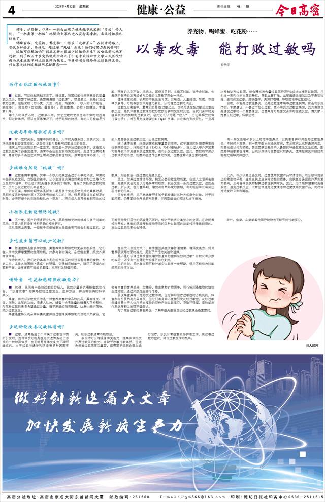 ■ 的确,民间有一些防过敏的妙招儿。比如少量多次喝蜂蜜或吃花粉,“以毒攻毒”的策略预防过敏发生,这种方法,并没有明确的科学共识。