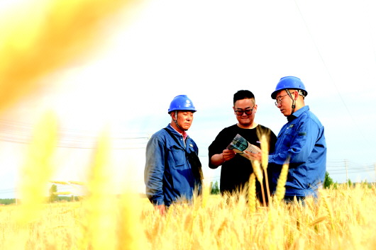 图3:5月31日,市供电公司员工在密水街道枣行村巡视110千伏高周线2号至10号之间的杆塔导线,并向当地村民宣讲大型农机线下作业的注意事项和电力设施保护知识,确保麦收期间用电安全稳定。 贾聚光摄