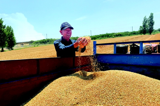 图2:喜获丰收,农民笑开怀。 张海燕摄