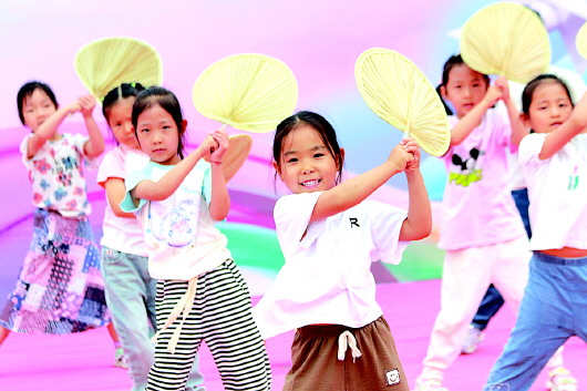 密水街道中心幼儿园开展丰富多彩的文艺演出活动,让孩子们在欢歌笑语中迎接自己的节日。图为5月30日,密水街道中心幼儿园的孩子们在表演舞蹈。 李海涛摄