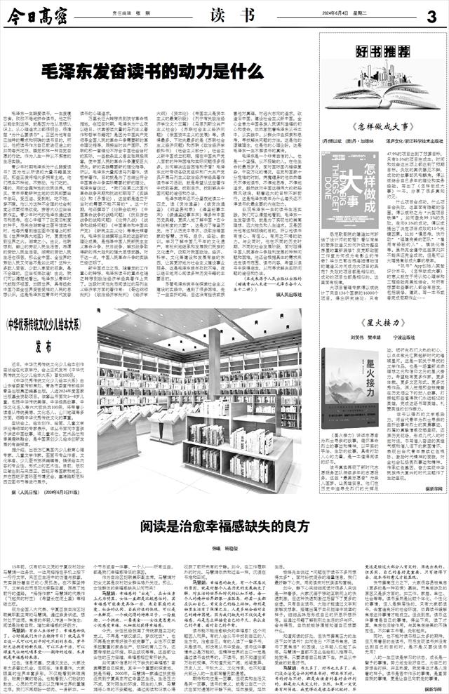 毛泽东一生酷爱读书,一生废寝忘食、孜孜不倦地拼命读书。他之所以能做到这样,就是因为他从思想认识上、从心理追求上都很明白、很清楚“为什么要读书”。正因为他有自己独特的需求和明确的读书目的,所以,他把读书作为自己前进征途上的如同每天吃饭、睡觉那样一种自觉自愿的行动,作为人生一种从不懈怠的生活实践。