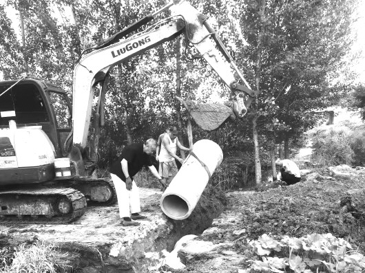 近日,夏庄镇集中力量对排水沟进行改造疏通,进一步加强基础设施建设,完善排水系统,满足农田灌溉,保障农业生产,切实为群众“排”忧解难。图为夏庄镇一处排水管道铺设现场。 杜文娟摄