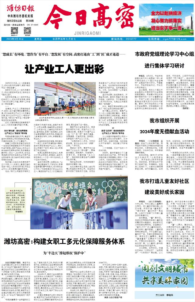 强化培养措施、畅通晋升通道、强化激励机制……高密全力策划实施一系列措施,让产业工人“想成长”有环境、“想作为”有平台、“想发展”有空间,助力越来越多产业工人在平凡岗位上干出了不平凡的业绩。