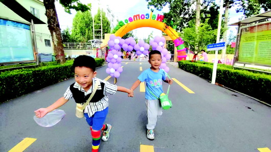 图⑵:元气满满的新学年正式起航。金苹果幼儿园开学第一天,爱与美好如约而至,小朋友欢快的脚步声再一次唤醒校园。 李元清摄