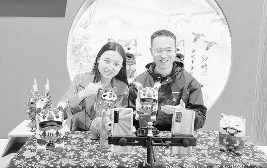 近年来,姜庄镇以党建联建为抓手,依托“全国非遗旅游小镇、全国非遗工坊”品牌优势,创建非遗联盟党委,探索实践出了组织联建、人才联育、产业联抓的“三联”工作法,走出了一条以党建赋能非遗的乡村振兴新路径。图为高密泥塑电商直播现场。 杜文娟摄