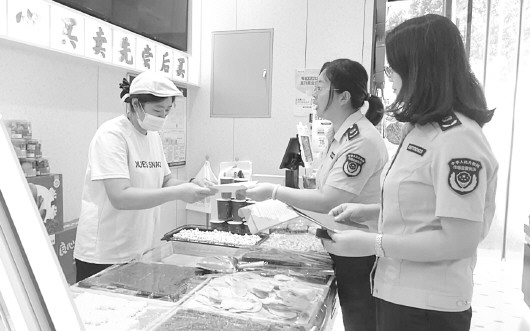 ◥随着中秋节临近,市市场监管局聚焦节日期间食品安全,进一步加大宣传和执法力度,强化节日期间食品安全管理,督促广大经营业户压实主体责任,依规合法经营,切实保障广大人民群众的食品安全。图为市市场监管局宣传人员走进沿街商铺进行食品安全宣传。 杜文娟摄