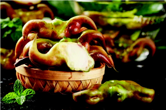 ◆菱角 很多人应该没有吃过菱角,它大多生长在南方,生吃熟吃都可以。未完全成熟的嫩菱角水分含量高,脆脆的可以当水果吃有淡淡的甘甜味道,成熟后淀粉含量高可以煮熟吃。菱角遇上排骨,味道也是一绝。