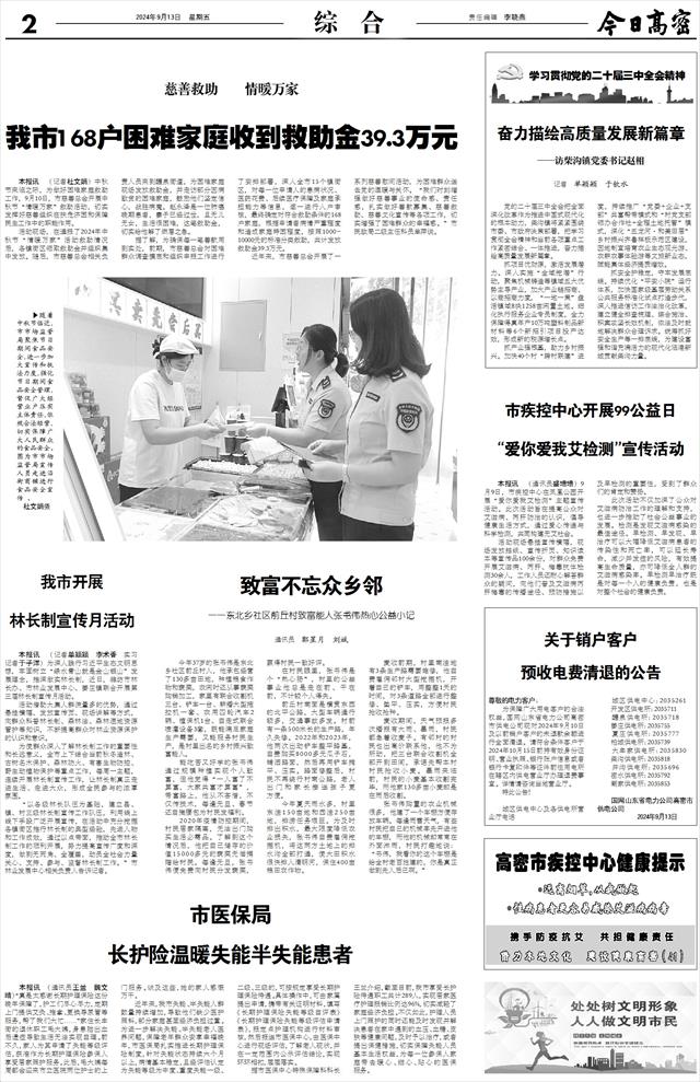 慈善救助 情暖万家 我市168户困难家庭收到救助金39.3万元   本报讯 (记者杜文娟)中秋节来临之际,为做好困难家庭救助工作,9月10日,市慈善总会开展中秋节“情暖万家”救助活动,切实发挥好慈善组织在扶危济困和保障民生工作中的职能作用。