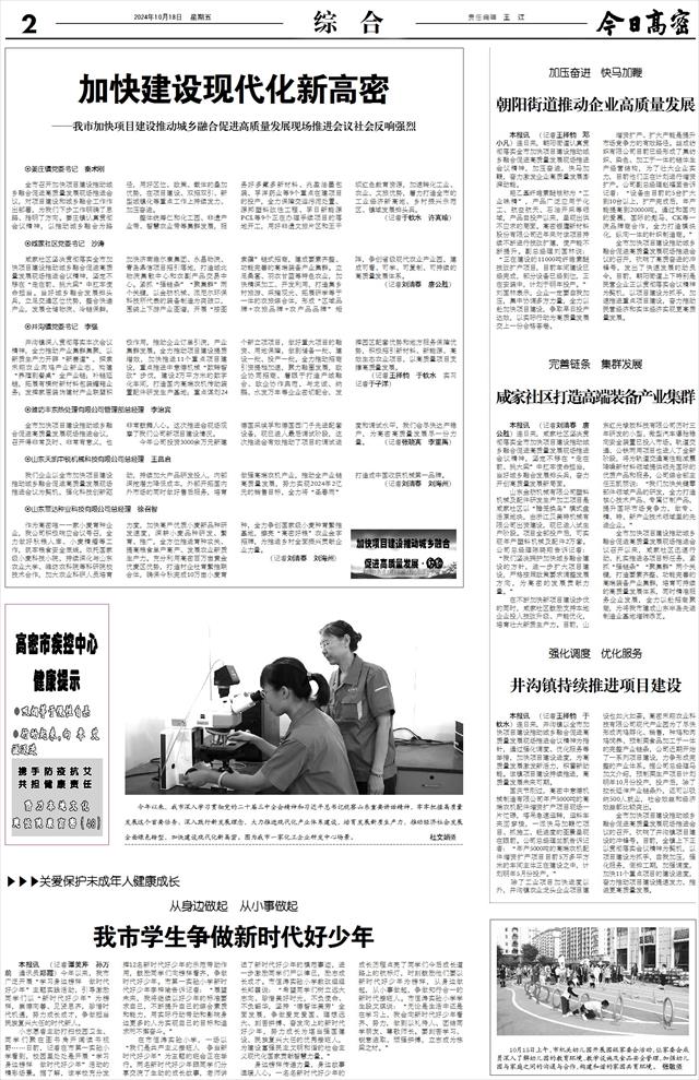 今年公司投资3000余万元新建德国采埃孚和德国西门子先进配套设备,现已进入最后调试阶段,这次推进会有效推动了项目的调试进度和调试水平,我们会尽快达产稳产,为高密高质量发展尽一份力量。 (记者张晓真 李重禹)
