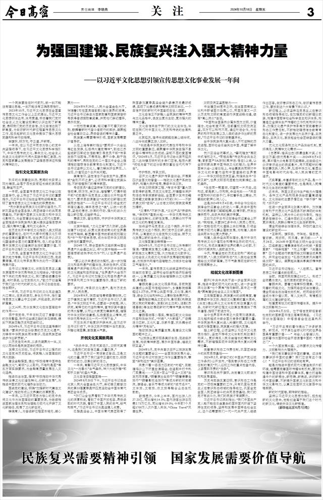 ——以习近平文化思想引领宣传思想文化事业发展一年间 (内容详见3版)