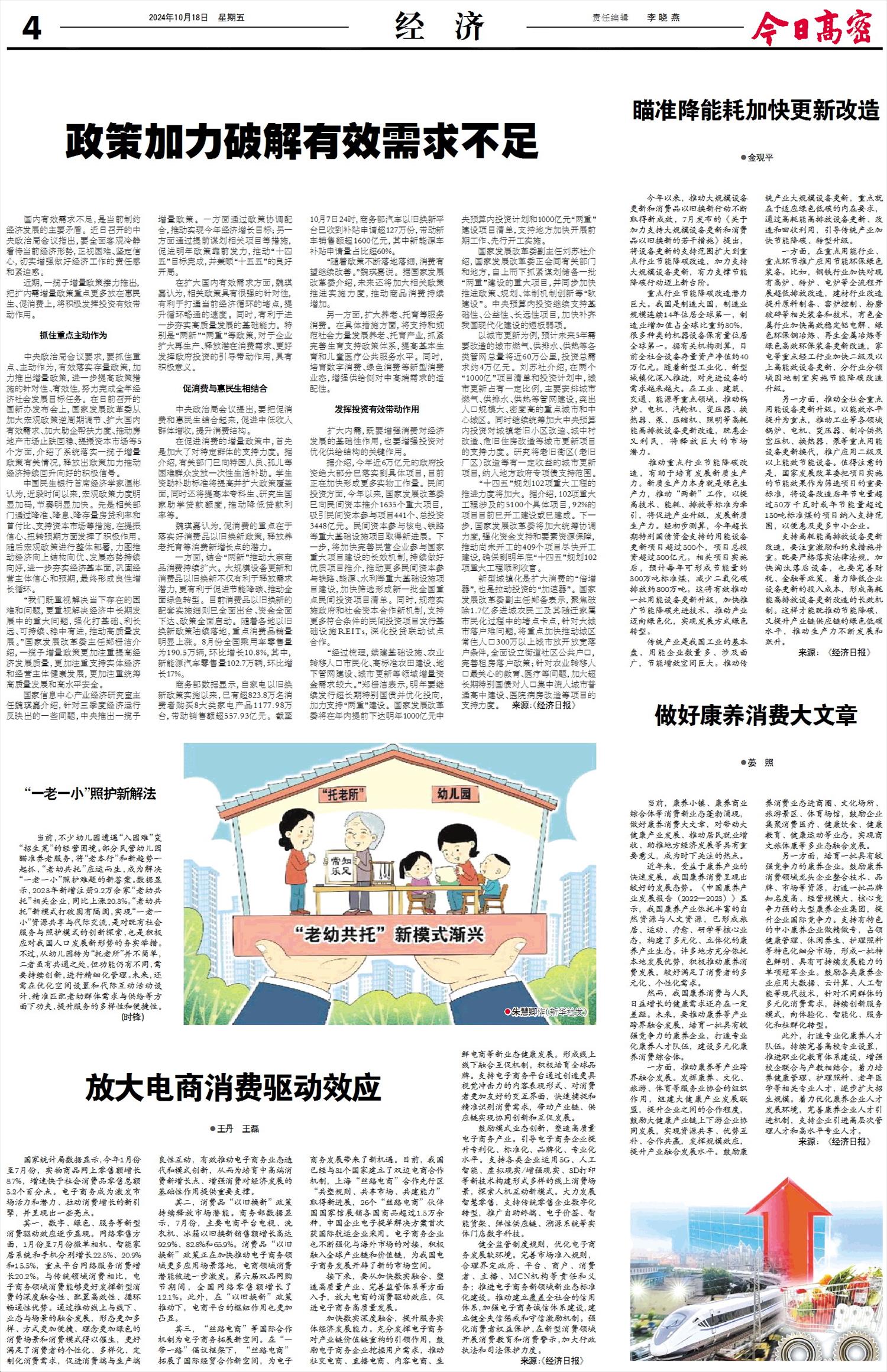 魏琪嘉认为,促消费的重点在于落实好消费品以旧换新政策,释放养老托育等消费新增长点的潜力。