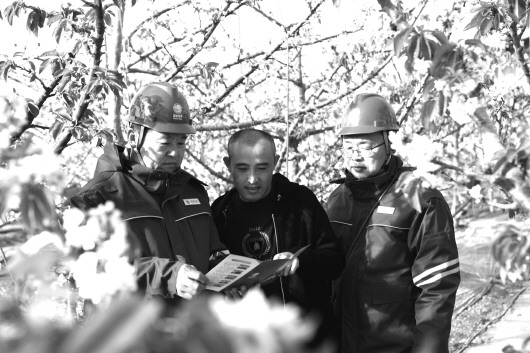 近日,我市境内出现大风降温天气,为防止大棚薄膜刮到线路上,市供电公司专职护线员深入园区开展春季季节性运维、排查线路通道隐患及大棚种植区大棚薄膜压实行动,宣讲电力设施保护知识。 贾聚光摄