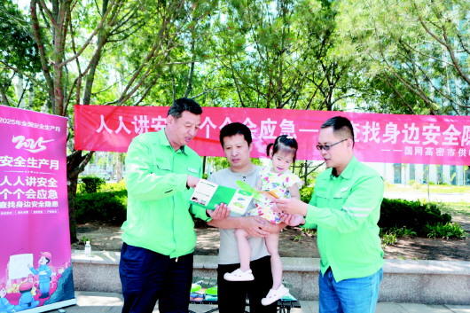 今年6月是第24个全国“安全生产月”。6月16日,国网高密市供电公司围绕“人人讲安全、个个会应急——查找身边安全隐患”主题,组织开展安全宣传咨询日活动,该公司员工在文体公园向市民讲解安全用电知识,赠送带有安全用电知识的“安全宣传扇”,为群众普及电力安全法规和用电安全常识。 贾聚光摄