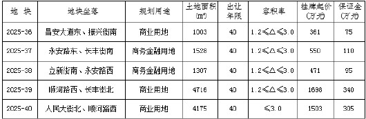 1.全部地块为带建筑物出让按现状交付。2025-36地块地上建筑物1013平方米与该宗国有土地一并挂牌出让,地上附属资产价款82.2544万元单独缴纳;2025-37地块地上建筑物3877平方米与该宗国有土地一并挂牌出让,地上附属资产价款484.5616万元单独缴纳;2025-38地块地上建筑物1954平方米与该宗国有土地一并挂牌出让,地上附属资产价款194.23万元单独缴纳;2025-39地块地上附属资产(房产面积4355.95平方米)与该宗国有土地一并挂牌出让,地上附属资产价款406.45万元单独缴纳;2025-40地块地上建筑物6282.34平方米与该宗国有土地一并挂牌出让,地上附属资产价款620.51万元单独缴纳;以上价款需在签订《国有建设用地使用权出让合同》前单独缴纳。