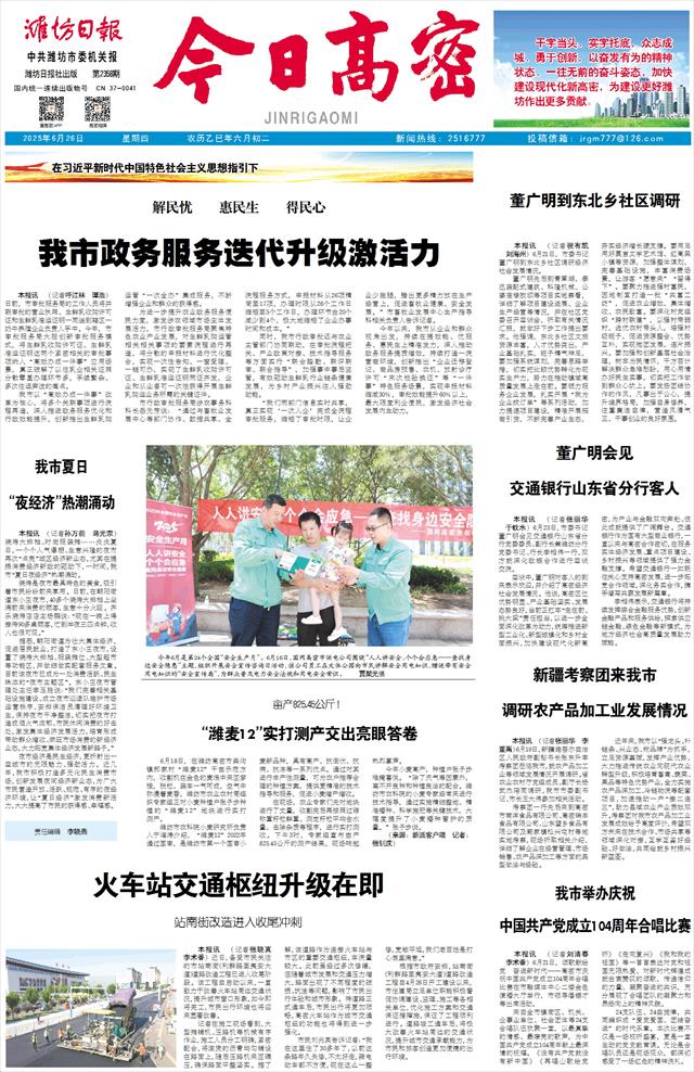 潍坊市农科院小麦研究所负责人于海涛介绍,“潍麦12”2022年通过国审,是潍坊市第一个国审小麦新品种,具有高产、抗倒伏、抗病、抗冻等一系列优点。通过对其进行丰产性测量,可为农户推荐合理的种植方案,提供更精准的技术指导和服务,促进小麦增产增收。
