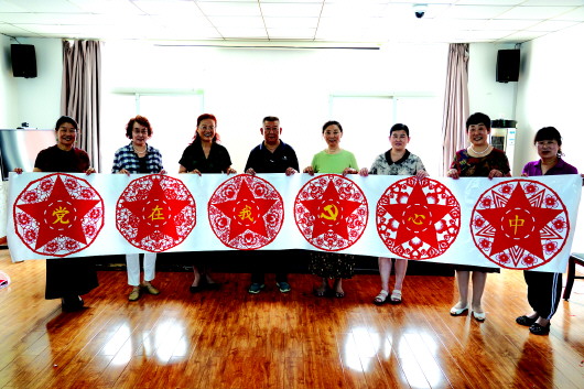 图5:我市剪纸艺人创作剪纸作品表达对党的深情祝福。 李重禹摄
