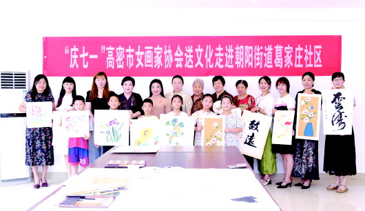 图3:6月27日,在朝阳街道葛家庄社区,女画家协会会员用一幅幅丹青送祝福感党恩。 朝阳摄
