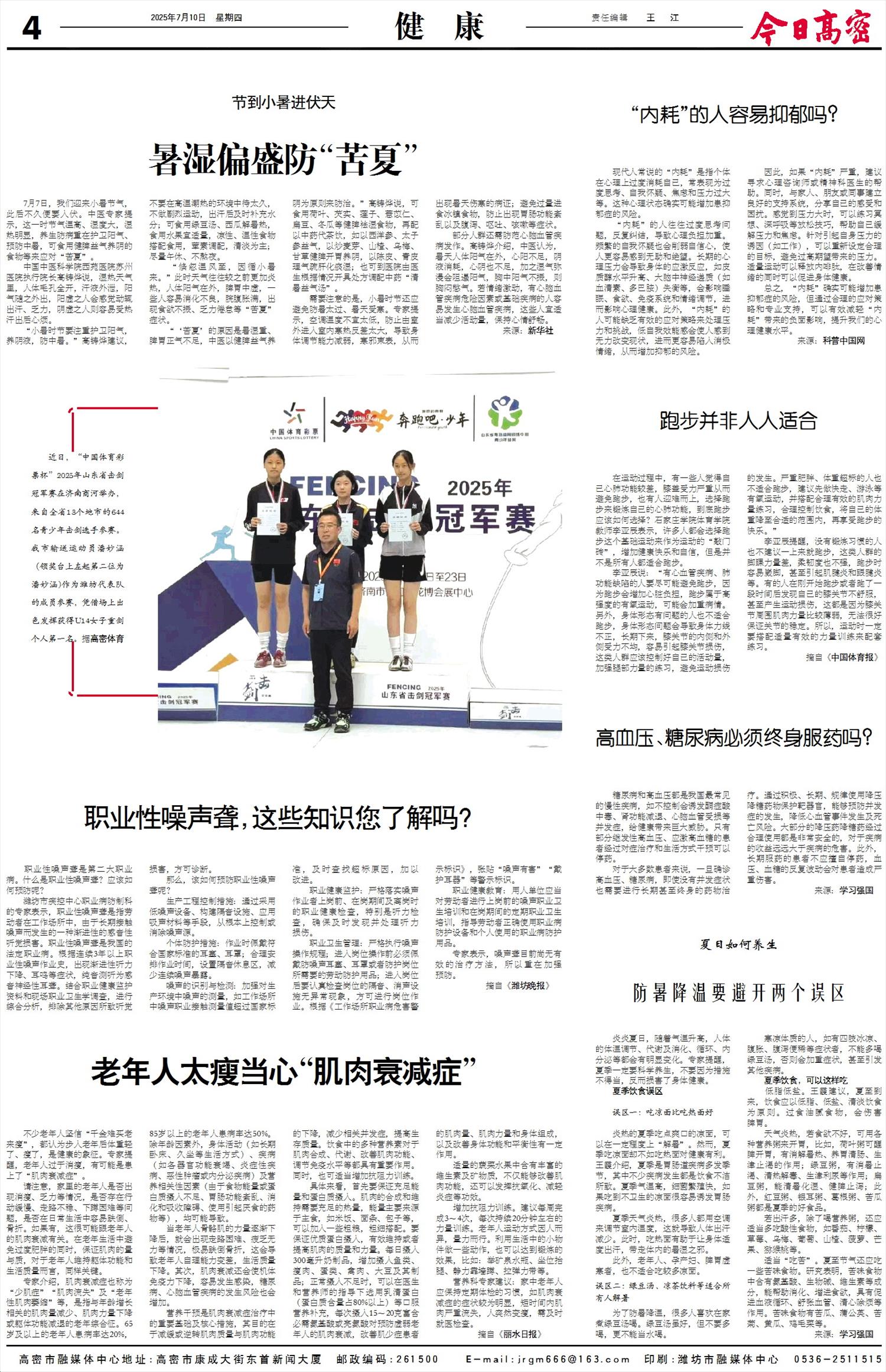 “小暑时节要注重护卫阳气,养阴液,防中暑。”高铸烨建议,不要在高温潮热的环境中待太久,不做剧烈运动,出汗后及时补充水分;可食用绿豆汤、西瓜解暑热,食用水果宜适量,凉性、温性食物搭配食用,荤素调配,清淡为主;尽量午休、不熬夜。