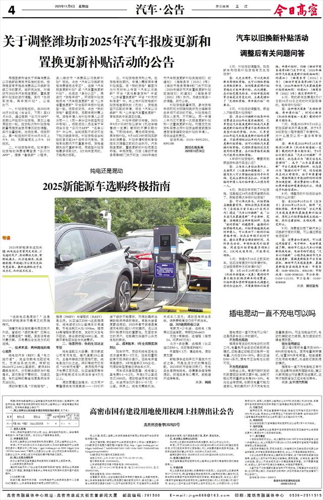 关于调整潍坊市2025年汽车报废更新和置换更新补贴活动的公告