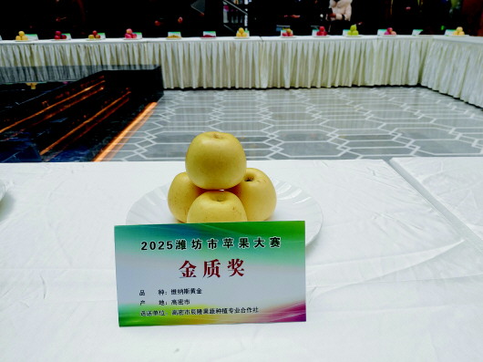 11月18日至19日,2025潍坊市苹果大赛在诸城市举办。高密市辰隆果蔬专业种植合作社选送的“维纳斯黄金”苹果荣获金奖。