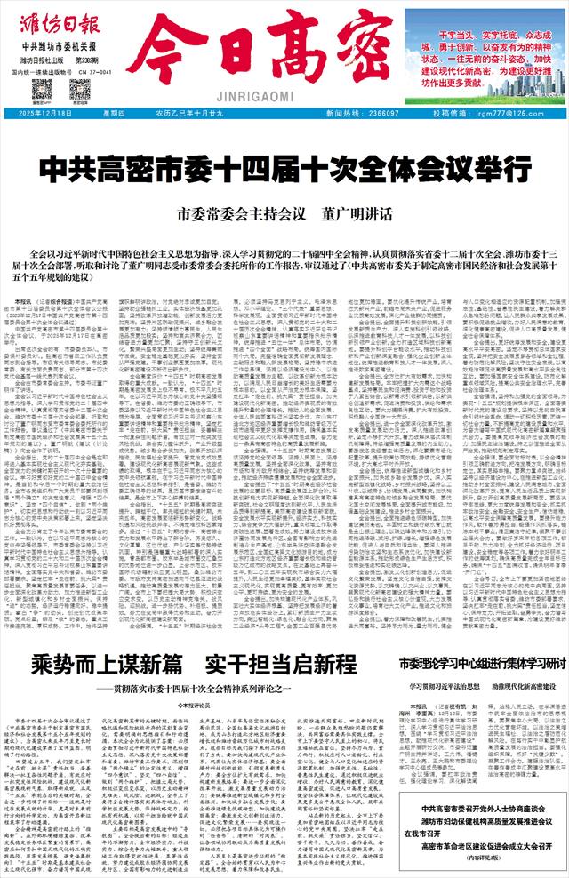 中国共产党高密市第十四届委员会第十次全体会议,于2025年12月17日在高密举行。