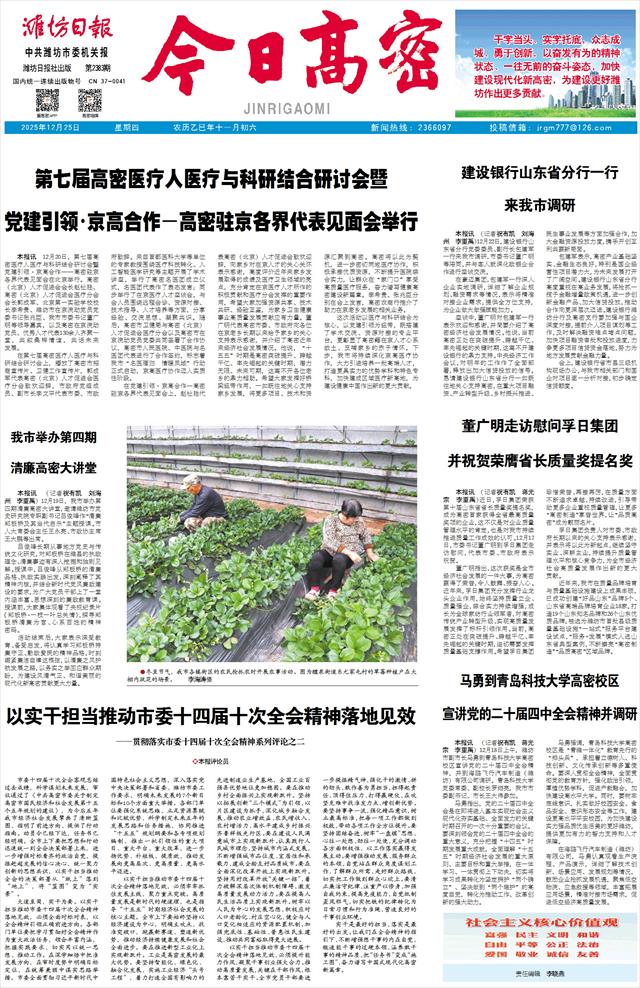 实干是最好的担当,落实是最好的出发。让我们在全会精神的指引下,不断增强想干事的内在自觉,锻造能干事的过硬本领,涵养敢干事的精神品质,把“任务书”变成“施工图”,奋力谱写中国式现代化高密新篇章。