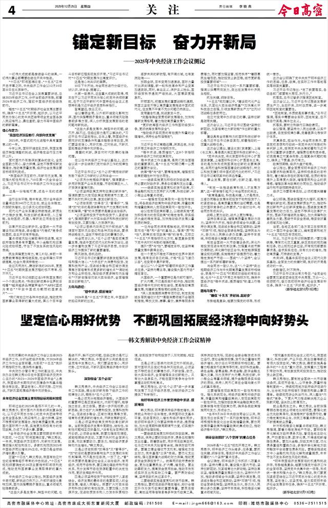 同时,我们将落实好全年目标任务,谋划好明年工作,确保今年主要指标保持潍坊前列,实现“十四五”圆满收官,“十五五”良好开局。