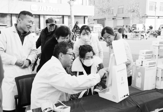 近期,姜庄镇借助姜庄大集的有利契机,开展“医保宣讲赶大集 义诊服务暖民心”活动,现场开展政策宣讲、有奖问答和爱心义诊等系列活动,将政策与服务“打包”送到群众身边。图为医护人员为群众讲解相关知识。 杜文娟 葛莉莉摄