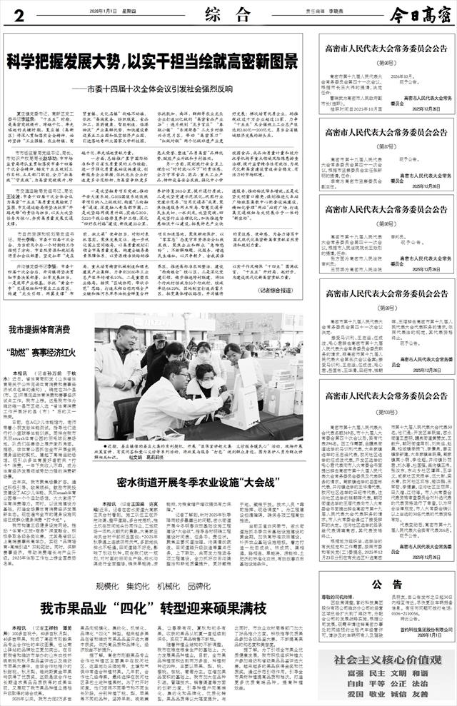“十五五”的目标已经明确,这既是对过往成就的接续拓展,更是对未来发展的庄严承诺。让我们全面落实党中央和省委、潍坊市委部署要求,坚决扛牢“走在前、挑大梁”责任担当,坚定信心、保持定力,开拓进取、奋勇争先,奋力谱写中国式现代化高密新篇章。