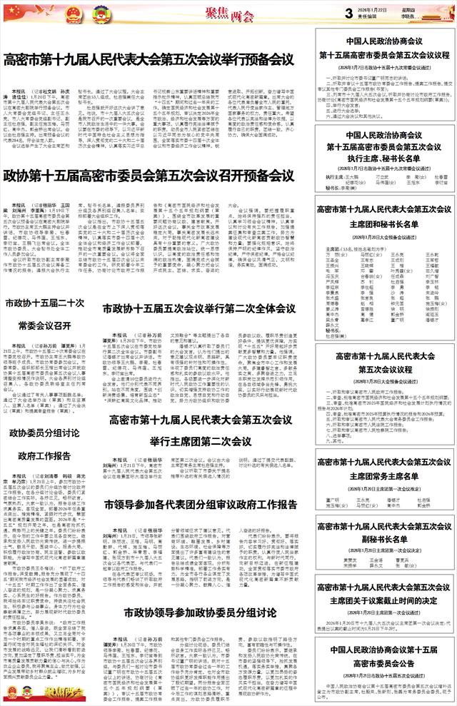 会议书面印发了高密市国民经济和社会发展第十五个五年规划纲要(草案)、高密市2025年国民经济和社会发展计划执行情况与2026年计划草案的报告、高密市2025年预算执行情况和2026年预算草案的报告。