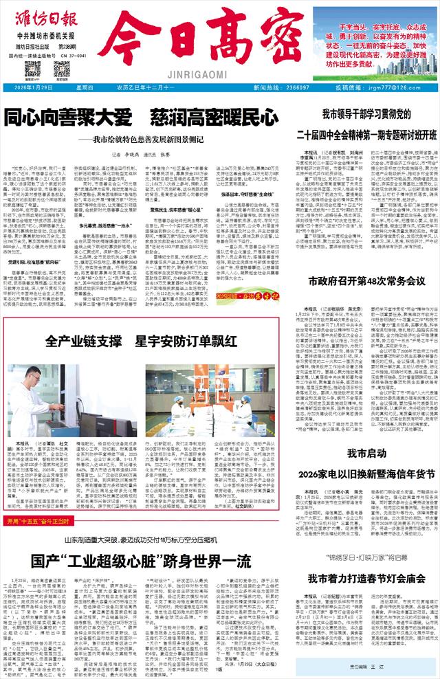本报讯 (记者谭浩 杜文娟)寒冬时节,星宇安防科技集团生产车间热火朝天,全自动化生产线全速运转,智能物流高效配送,全球120多个国家和地区的订单正加速落地。2025年,这家高密本土防护手套企业凭借国际标准话语权与技术创新硬实力,实现订单量与销售收入双增长,书写“小手套织就大产业”新篇章。